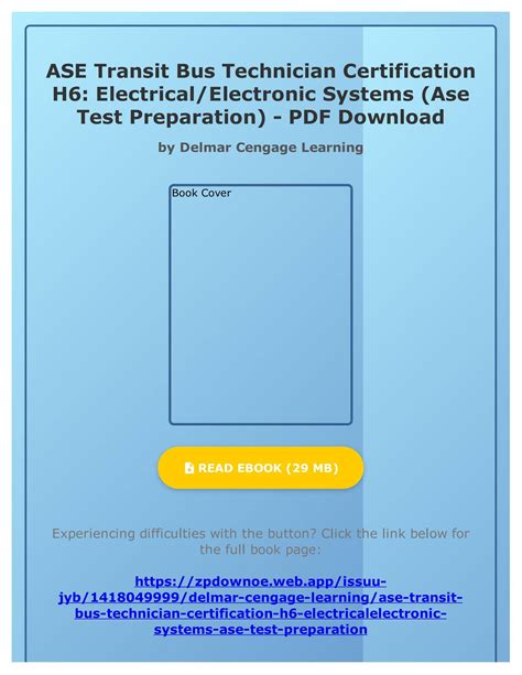 Read Online ASE Transit Bus Technician Certification H6 Electrical/Electronic Systems Epub online is a convenient and frugal way to read ASE Transit Bus Technician Certification H6 Electrical/Electronic Systems you love right from the comfort of your own home. Yes, there sites where you can get Epub "for free" but the ones listed below are clean from viruses and completely legal to use.